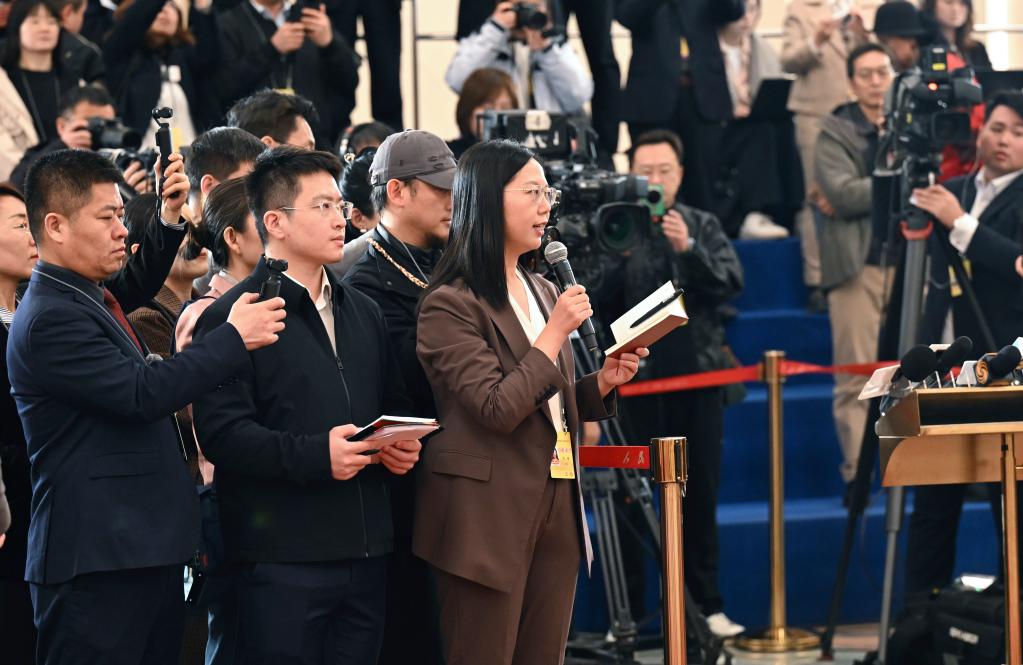 ??3月9日,第十四屆全國(guó)人民代表大會(huì)第四次會(huì)議第二場(chǎng)“部長(zhǎng)通道”集中采訪(fǎng)活動(dòng)在北京人民大會(huì)堂舉行。這是記者在現(xiàn)場(chǎng)提問(wèn)。