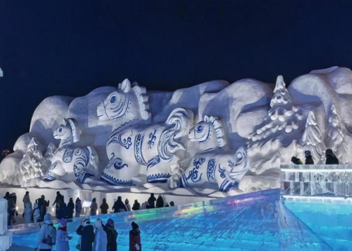 圖為青花瓷系列馬主題雪雕吸引眾多游客觀看。 本報訊(記者閆利文/攝)隨著馬年春節腳步臨近,第二十七屆哈爾... 2026-01-19 10:31:41